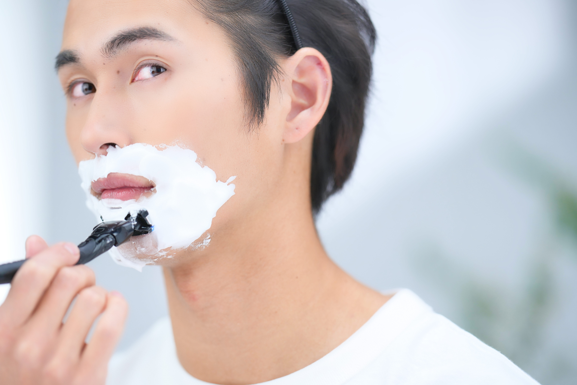 髭を剃る前に、まず洗顔で顔の汚れや皮脂を落としましょう。汚れや皮脂が残っていると、カミソリが引っかかりやすくなり、肌への負担が大きくなります。